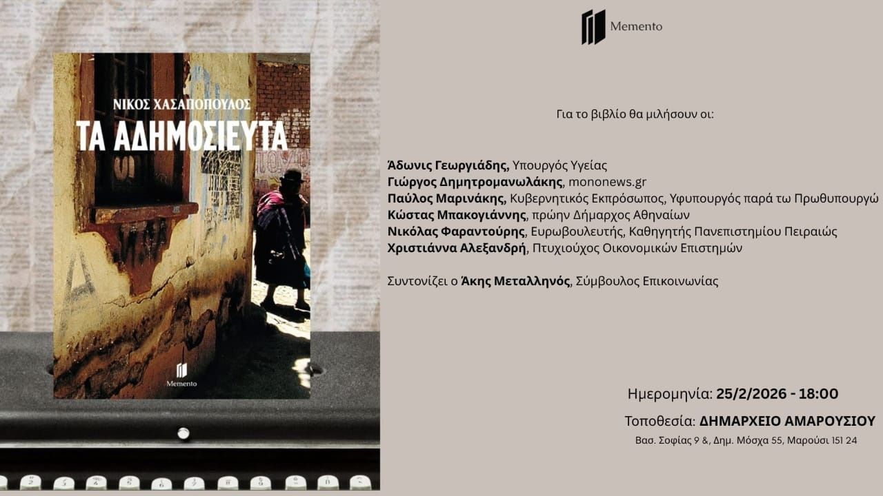 Η έκδοση θα παρουσιαστεί την Τετάρτη 25 Φεβρουαρίου 2026, στις 6 το απόγευμα, στο Δημαρχείο Αμαρουσίου . Χαιρετισμό θα απευθύνει…